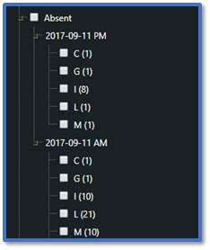 Expand the Absent group to see a list of subgroups. These are dates with absences from your MIS, divided into AM and PM sessions.