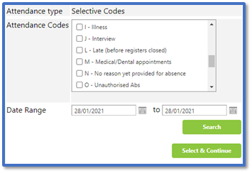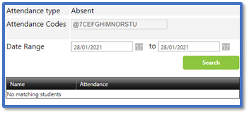 Absent Any Reason: This searches for students marked with any code indicating they are absent e.g., illness, unauthorised, religious observation etc. It does not include students who are being educated offsite.