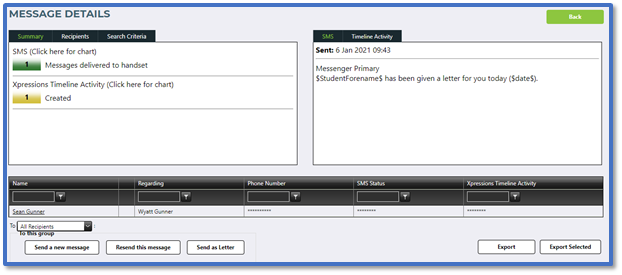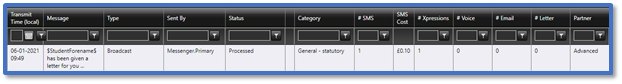 SMS/Xpressions/Voice/Email/Letter: This is the number of that message type sent out to the recipients.