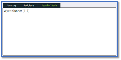 The Search Criteria tab shows the criteria that was used to select the contacts that the message was sent to.