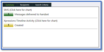 The Recipients tab provides a bar chart of the different delivery statuses for the message and is only present when sending SMS.