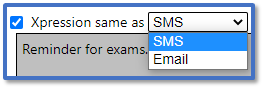 Tick Xpression same as SMS/Email to automatically use a copy of the message from one of those tabs or untick it to enter a new message in the text editor.