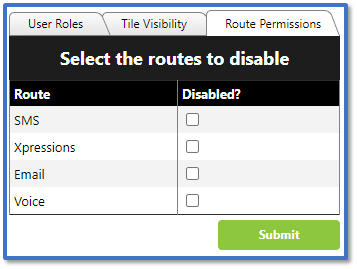 | Instructions to control whether a user can send messages via SMS, Email, Xpressions and/or Voice. |