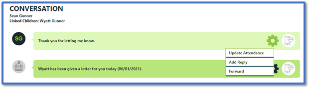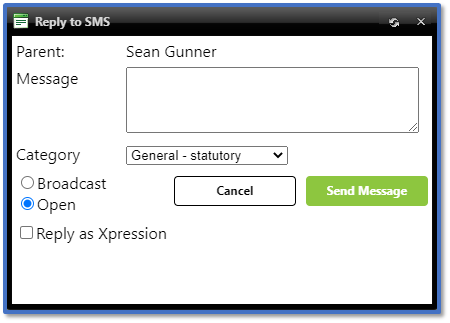Tick Reply as Xpression if the parent has the app - it will be ticked by default if their Incoming message was sent via Xpressions originally. Read our guide for further information: Messenger: Xpressions and Enhanced Xpressions.