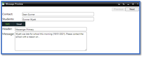 Primary Parental Contact: The message will send to the primary parental contact of the student i.e., the parent listed as the priority contact in the MIS.