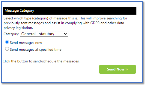 Once per Parent: For parents of siblings, this option means that they will only receive one message from the school regardless of the number of the children they have. Use this for general messages that are not personalised to any one sibling.