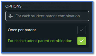 For each Student Parent combination: For parents of siblings, this option means that they will receive your message as many times as they have children. Use this for messages that are personalised for each student. We recommend this option when using this wizard.