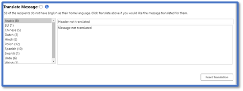 If you make any further changes to your message after ticking Translate Message, click Reset Translation to update the translated version: