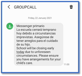 Once sent, this is how the message will appear to the recipient with a non-English home language: