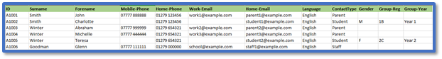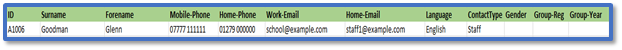 Group-Year: This is the year group of the contact. If you enter a year group that already exists in Messenger then the contact will be added to it when uploaded, otherwise it will create a new one.