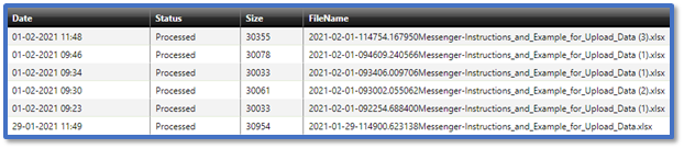 Status: Whether the upload was Processed, Uploaded, or Failed.